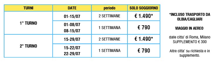 Il 1° giorno arrivo in struttura, sistemazione nelle camere, controllo delle schede sanitarie, cena, presentazione staff e attività.