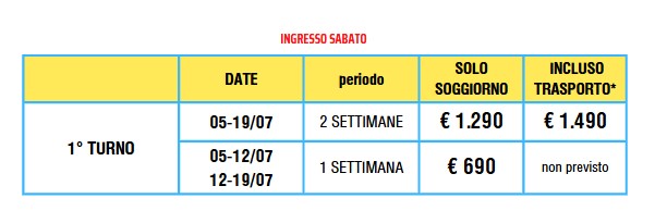 Il 1° giorno arrivo in struttura, sistemazione nelle camere, controllo delle schede sanitarie, cena, presentazione staff e attività.